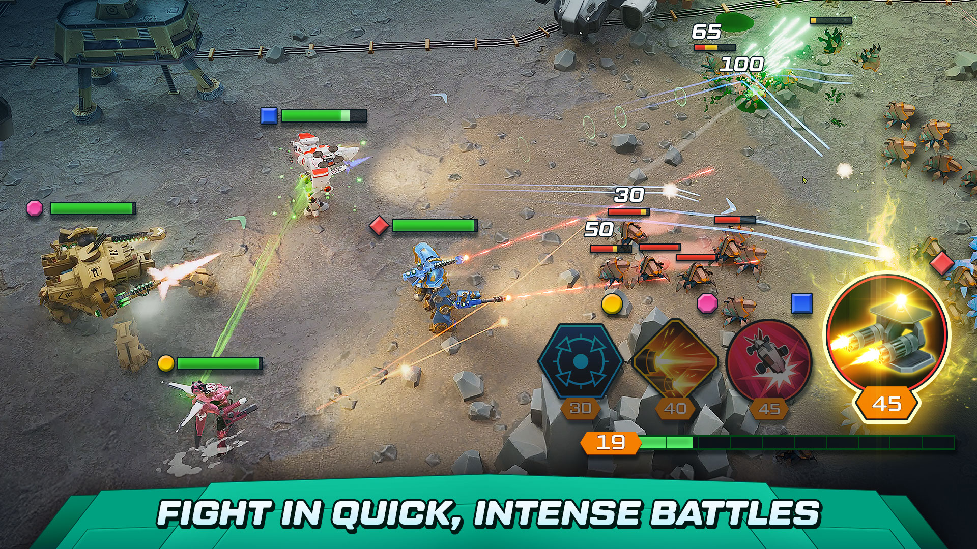 Выбирайте боевых роботов, оснащайте их передовым оружием и вступайте в бои роботов как в одиночных PvP-аренах, так и в масштабных клановых сражениях. Каждое ваше решение влияет на исход битвы— станьте лучшим командиром в этой войне за галактику.